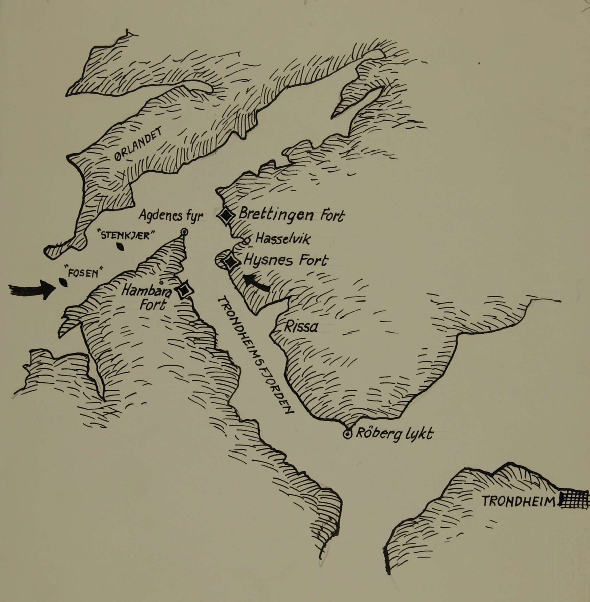 - Kart over området Agdenes Brettingen fort Trondheimsfjorden .