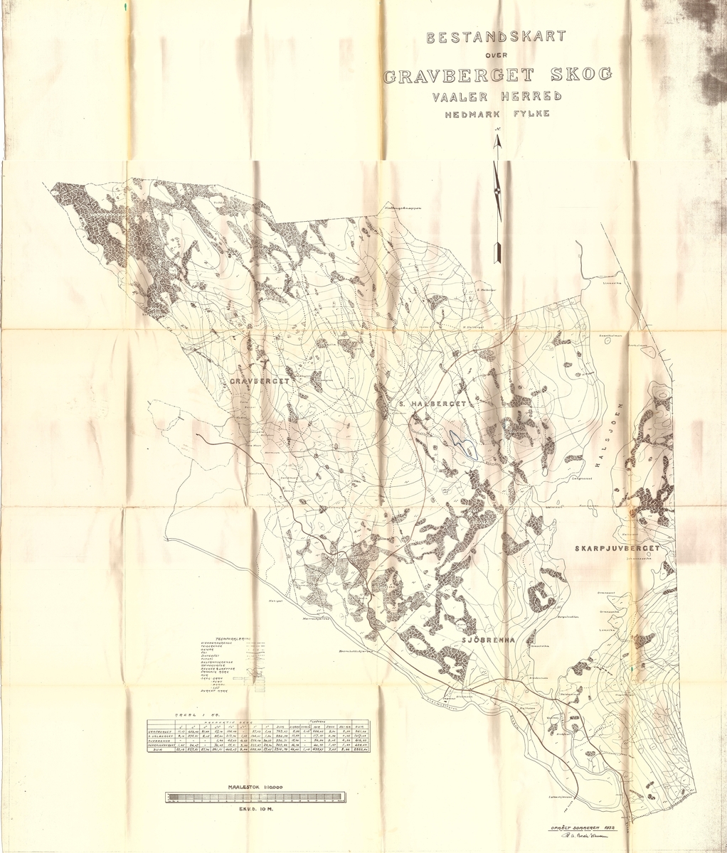 - Kart, driftsplankart, bestandskart, over Gravberget skog i Våler .